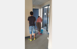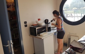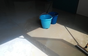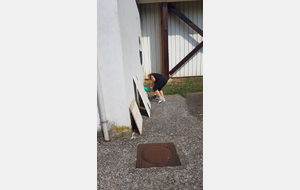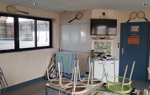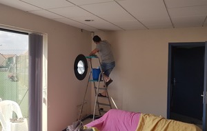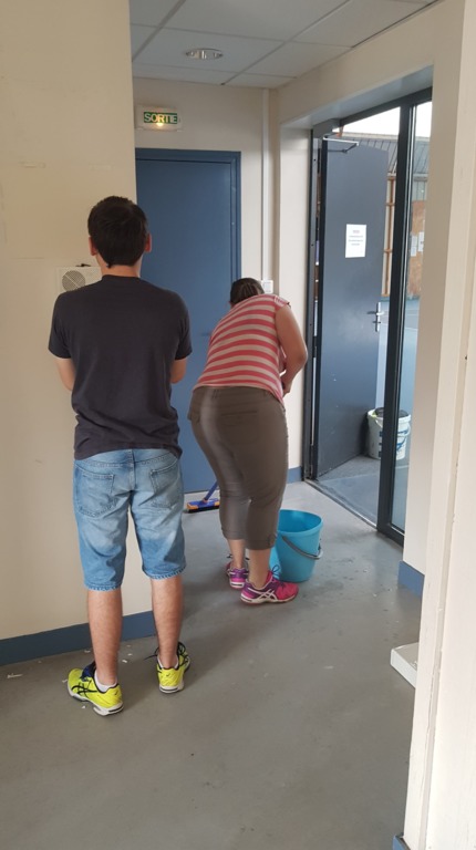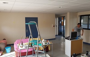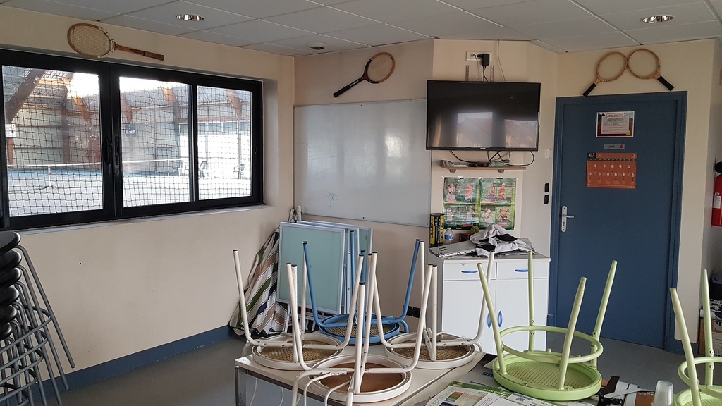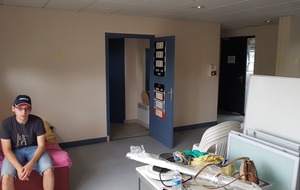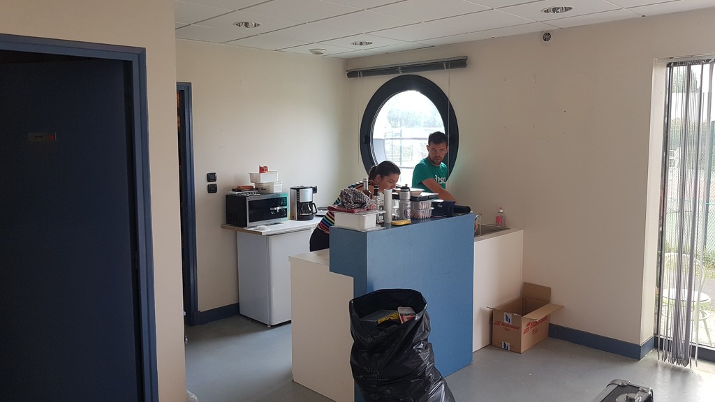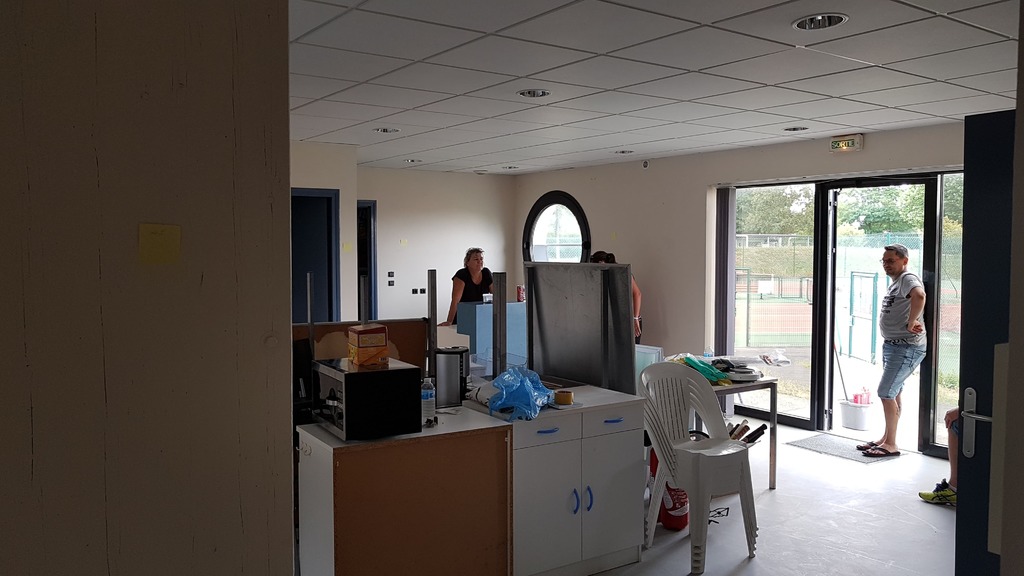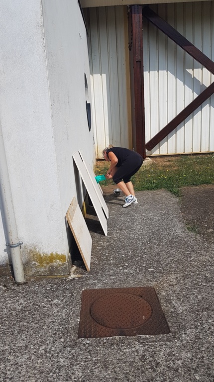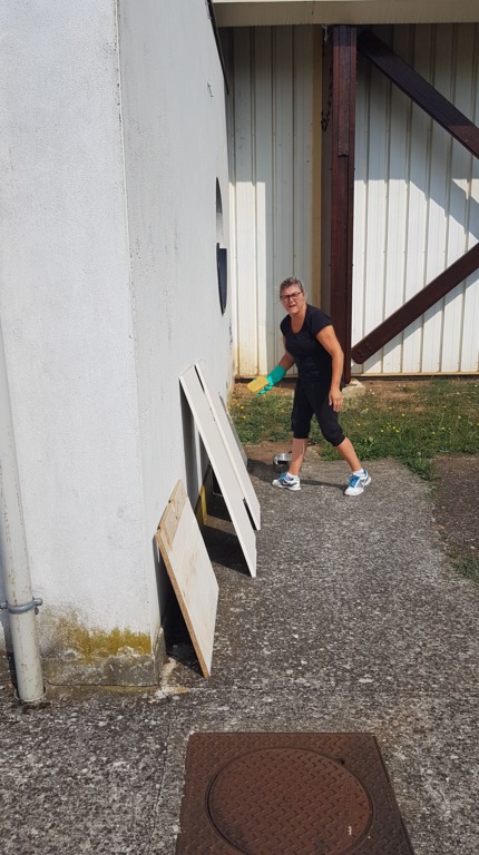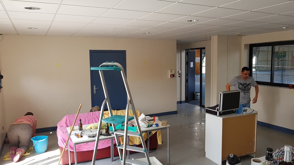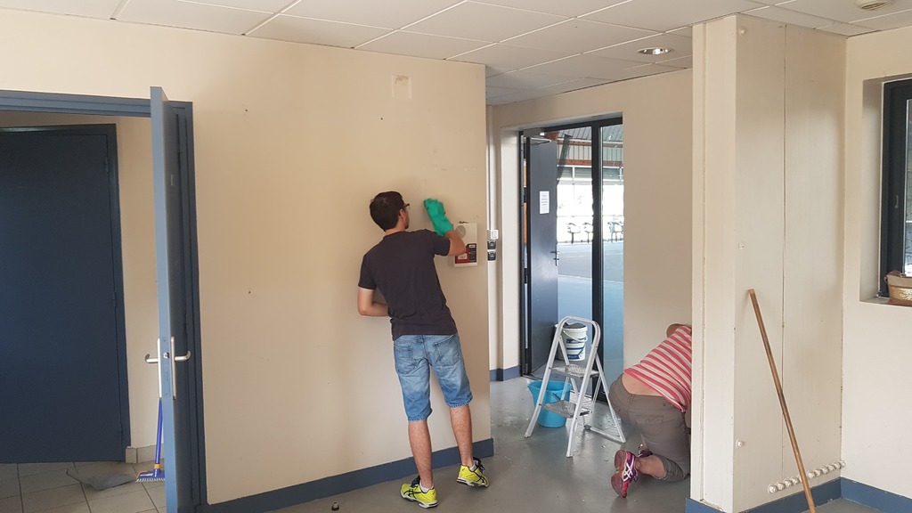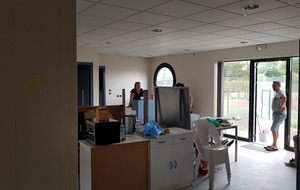 Le 21 juillet 2018, nous avons vidé et nettoyé la pièce à vivre du club house (lessivage du sol et des murs).