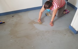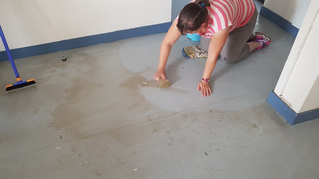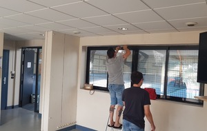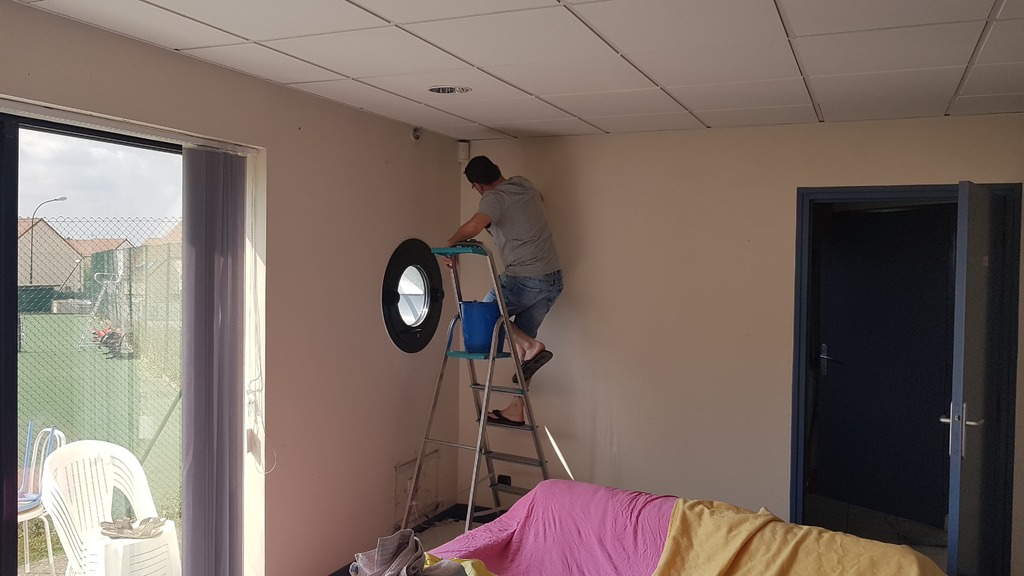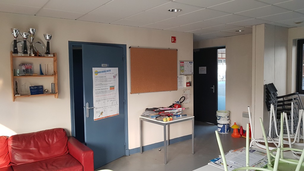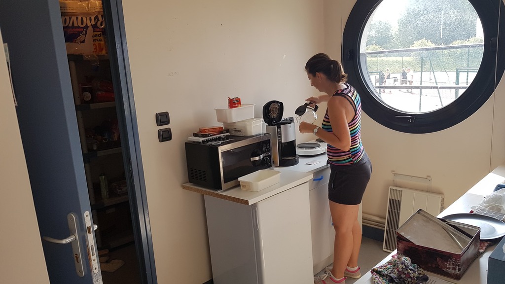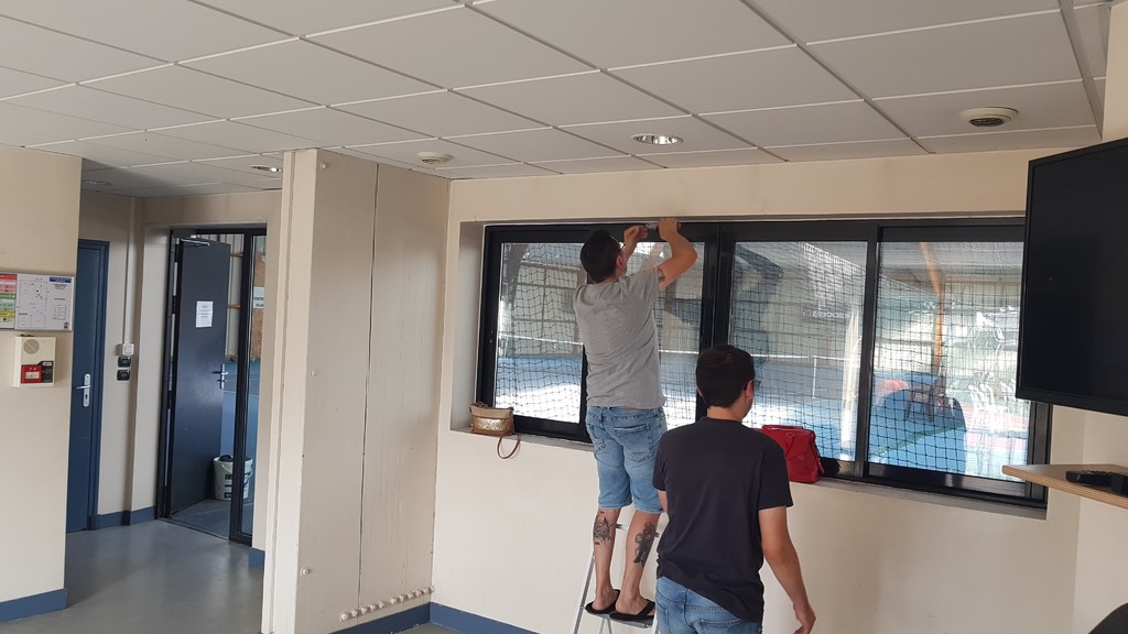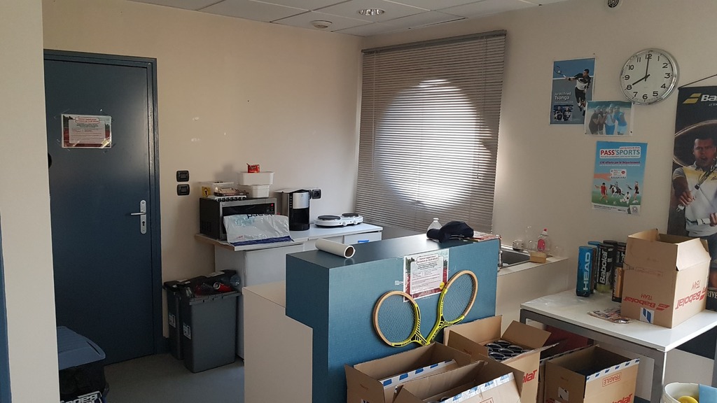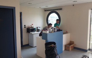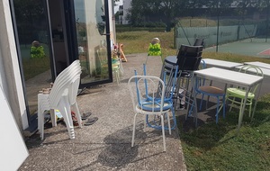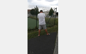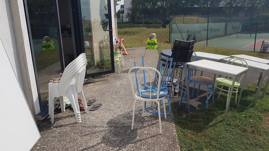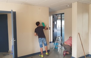 Le 21 juillet 2018, nous avons vidé et nettoyé la pièce à vivre du club house (lessivage du sol et des murs).