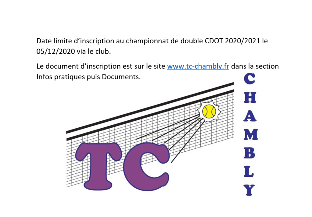 Fichier d'inscription a renvoyer au club avant le 05/12/2020